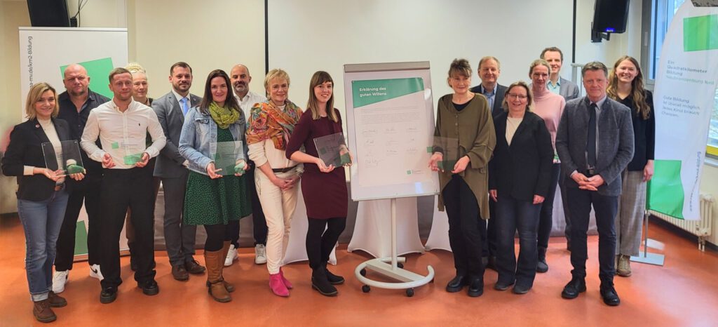 In Neubrandenburg Nord entwickelt sich das Bildungsnetzwerk rund um die beiden Schulen „Grundschule Nord Am Reitbahnsee“ und „Regionale Schule Nord“. Mit der Unterzeichnung der Erklärung des guten Willens durch alle beteiligten Bildungseinrichtungen und Kooperationspartner:innen wurde bei der Eröffnungsveranstaltung ein deutliches Zeichen gesetzt: für die zukünftige Kooperation aller Bildungsakteur:innen im Sinne der Kinder und Jugendlichen und deren Familien im Neubrandenburger Norden.